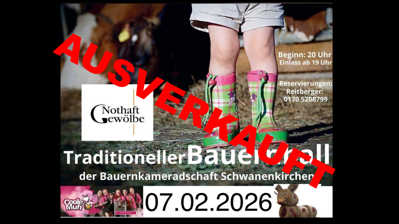 Traditioneller Bauernball der Bauernkameradschaft Schwanenkirchen AUSVERKAUFT mit der Band Coole [...]